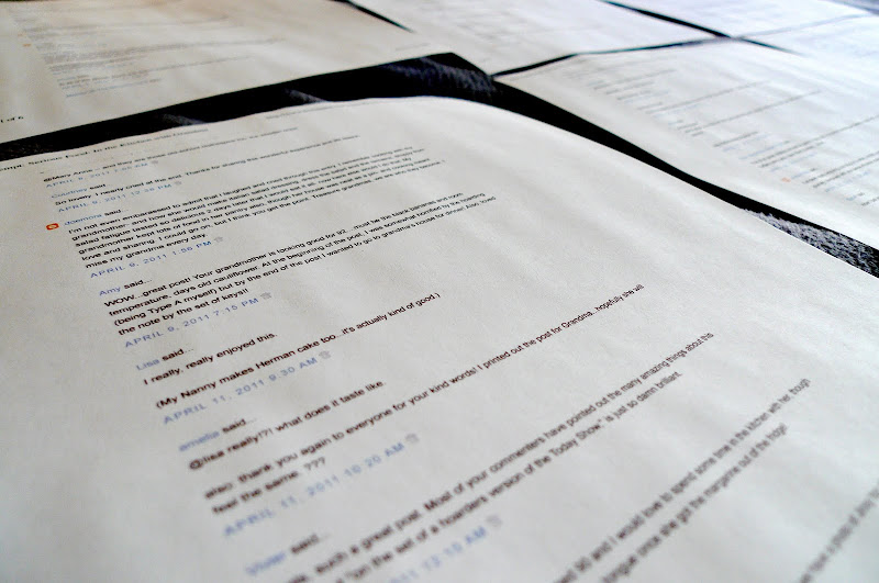 15. Printed out comments from the In the Kitchen with Grandma post. As Grandma's house isn't exactly Internet-ready, I put these in the mail and sent them to her. She should get them tomorrow, which of course reminds me of the fact that there are only a few days left to vote in Saveur's Food Blog awards. Check out all the categories here and vote for your favorites!